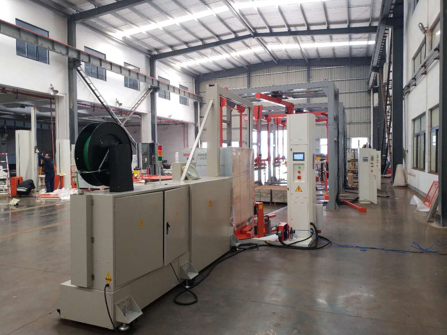 本機器為全自動纏繞機搭配全自動穿箭打包機實現(xiàn)打包一體機,配備遙控器遠程使用,全程只需要按一個啟動按鈕。